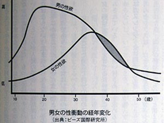 男女の性衝動の経年変化を表したグラフだよ